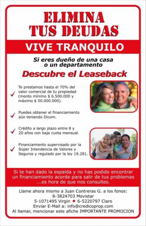 Financiamiento SEGURO: EMPRESA SUPERVISADA POR LA SUPERINTENDENCIA DE VALORES Y SEGUROS Y CREDITO REGULADO POR LA LEY LEASING N? 19.281.-